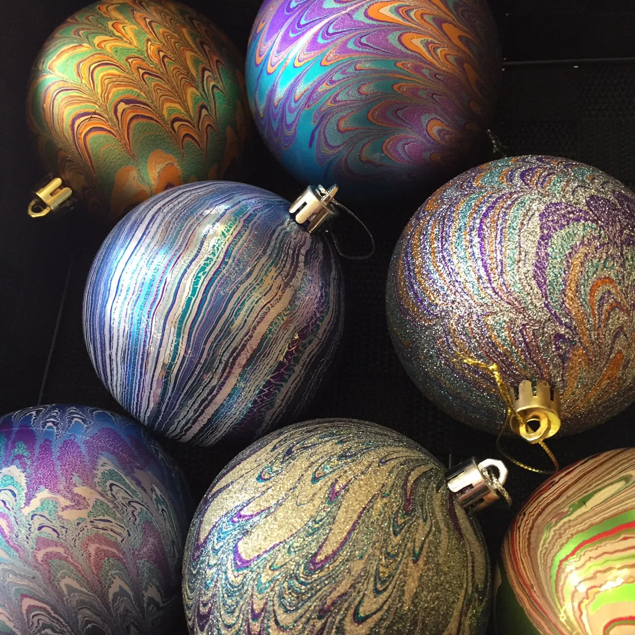 Create a set of 6 water marbled ornaments with Craftopolis Craft Club! In this workshop, you get a choice of a gold or silver 6 ornament set (select at checkout) to marble, Each set contains 2 ea ornaments with glitter, matte and shiny finish ready to marble. Marble each ornament a different color or choose a color theme! Instruction and Guidance will be given, you just add the creativity and find your zen! You can also request a 2nd set of 6 ornaments to marble during your session for $25.