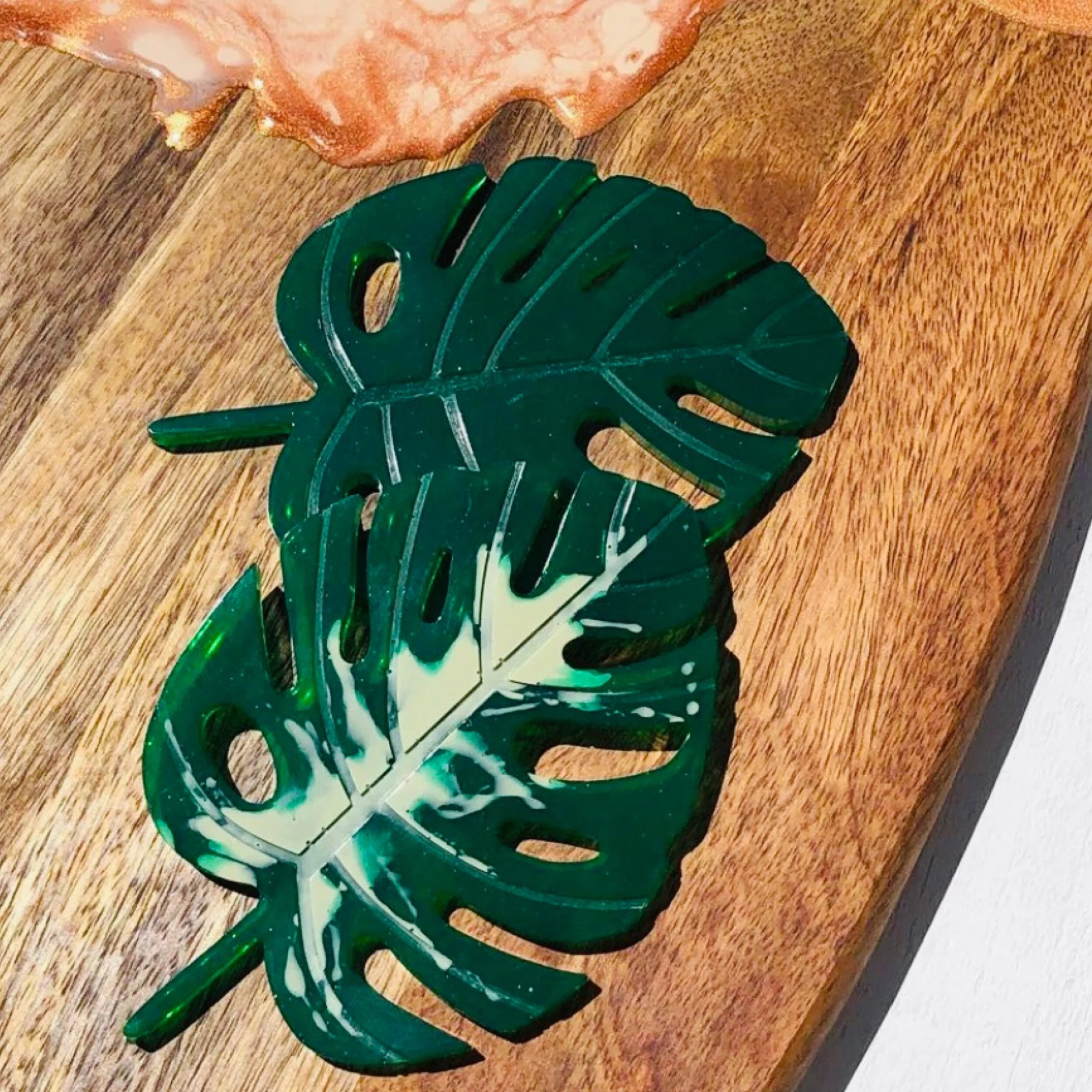 In this workshop we will be mixing custom color options and details with resin, in molds! The Monstera leaf is the same size as the coasters you might have seen Paige from Awkwood Things selling at Markets. It can be used as a coaster or a Christmas ornament! Each participant will make two styles of ornaments, with the second being a variety of options. All materials are provided, as well as drinks and light snacks.
